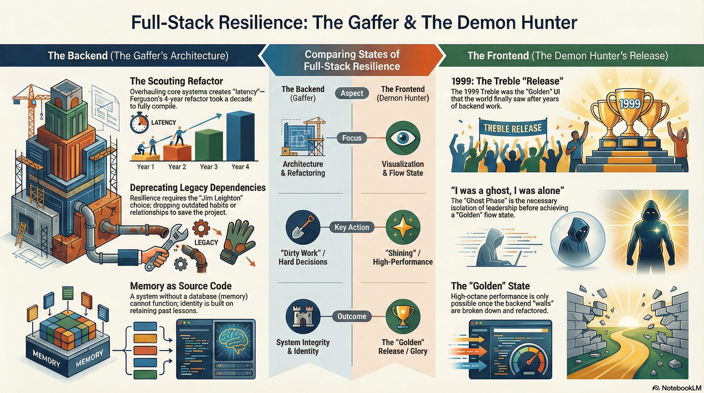 The Takeaway: To be “Engineered,” you need both modes. You need the patience to refactor the backend (Scouting/Habits) even when there is no immediate reward, and you need the explosive energy of the Frontend (The Demon Hunter) to capitalize when the system finally goes live.