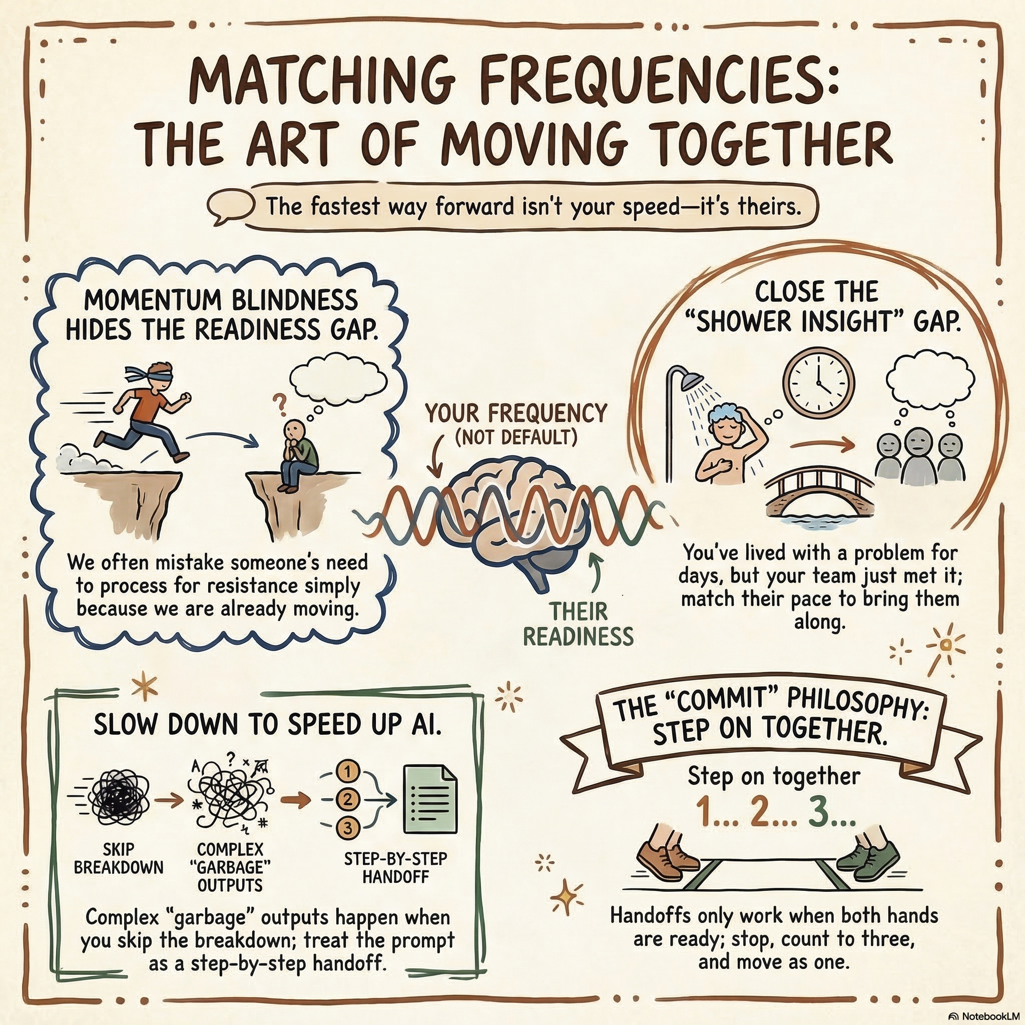 The fastest way forward isn’t your speed. It’s theirs. Slow down. Count to three. Step on together.